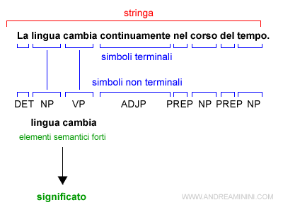 Ad esempio, considerando i sintagmi minori alla precedente stringa sono aggiunte nuove etichette: