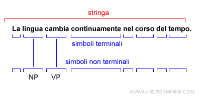I simboli NP e VP sono detti simboli non terminali perché sono etichette associate alle parole.