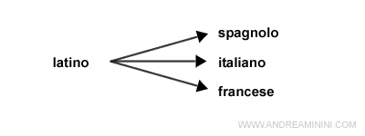 esempio, l'evoluzione della lingua latina in italiano, spagnolo e francese