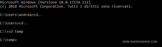 Per aprire il prompt dei comandi premo i tasti WIN+R sulla tastiera.