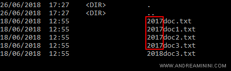 Il comando del cancella soltanto alcuni files della directory corrente, quelli con il nome che comincia con 2017.