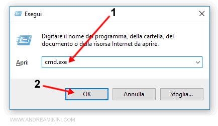 A questo punto digito cmd.exe e clicco sul pulsante OK.