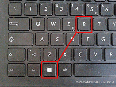 Per aprire il prompt dei comandi DOS sul sistema operativo Windows, premo contemporaneamente i tasti WIN + R della tastiera.