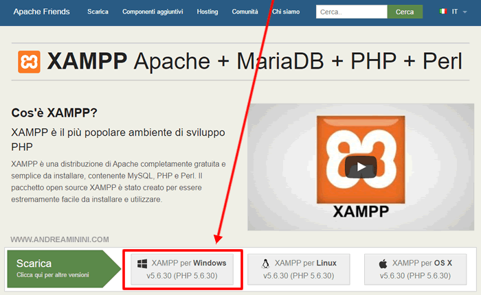 Vado sul sito ufficiale di Xampp all'indirizzo www.apachefriends.org.