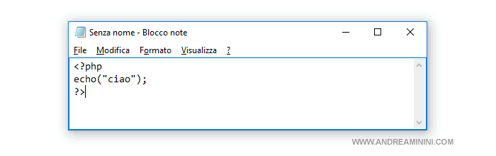 Apro l'editor di testo e scrivo un piccolo programma in Php.