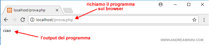 A questo punto eseguo il programma prova.php, vado sul browser e apro la pagina http://localhost/prova.php