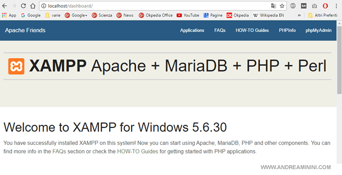 Questa schermata mi conferma che l'emulazione Apache sta girando sul PC.