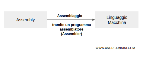 Nota. L'assembly è un linguaggio di basso livello, tradotto in linguaggio macchina tramite un assemblatore. E' strettamente dipendente dal processore.