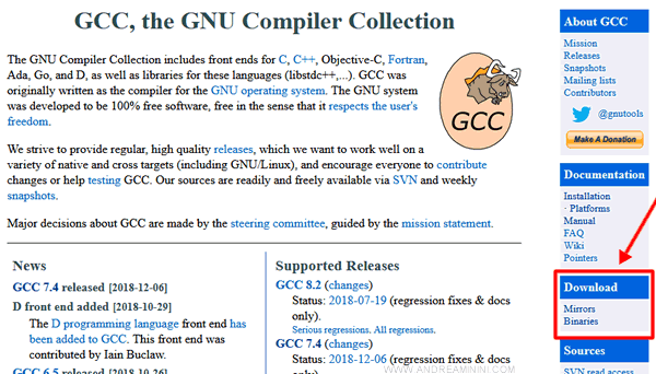 Vado sul sito ufficiale di GCC all'indirizzo gcc.gnu.org