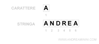 Una stringa, invece, è composta da due o più simboli alfanumerici ( es. "Andrea" ).