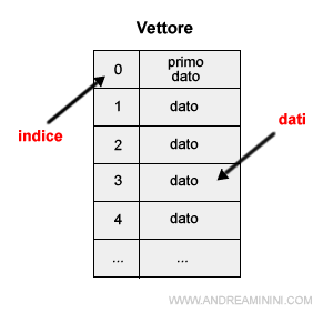 Ogni valore (o elemento) è associato a un numero all'interno di un indice anziché una locazione di memoria.