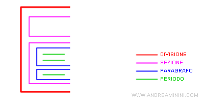 A loro volta le sezioni sono suddivise in paragrafi.