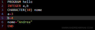 La dichiarazione delle variabili può essere esplicita o implicita. E' esplicita se il tipo di dato di un nome di variabile è definito dal programmatore. E' invece implicita negli altri casi. Di default, tutti i nomi di variabile sono reali, salvo le lettere i,j,k,l,m,n.