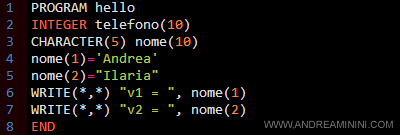 Il linguaggio Fortran consente l'uso delle variabili array ( vettori bidimensionali ). E' sufficiente indicare tra parentesi tonde il numero massimo degli elementi dell'array ed eventualmente, se si tratta di una stringa, il numero massimo di caratteri di ogni elemento.