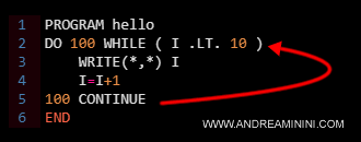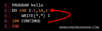 L'istruzione DO / CONTINUE mi permette di realizzare una struttura ciclica con N iterazioni. Il blocco di istruzioni viene eseguito per N volte. In alternativa, posso usare anche la forma più semplificata DO / END DO.