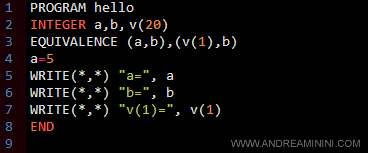 L'istruzione EQUIVALENCE mi consente di creare due variabili tra loro equivalenti. Quando si modifica una variabile, si modifica automaticamente anche l'altra. E viceversa. Funziona anche con i singoli elementi di un array.