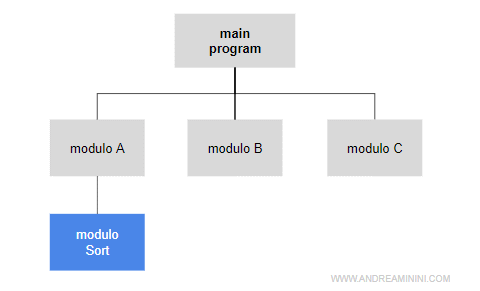 Ogni modulo viene richiamato da un altro modulo (modulo chiamante) del progetto.