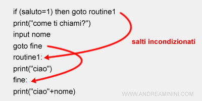 Nei primi linguaggi di programmazione l'istruzione di salto incondizionato (GoTo) rendeva difficoltosa l'interpretazione del codice sorgente da parte dei programmatori.