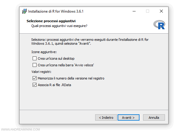 Seleziono le opzioni di avvio di default e clicco su Avanti.