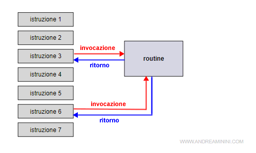 Una routine può essere richiamata dal programma principale o da un'altra routine.