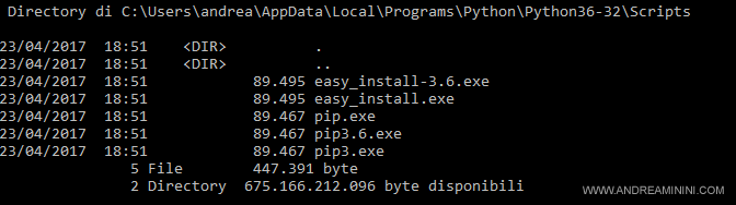 Apro il prompt del DOS ed entro nella directory dove si trova Python.