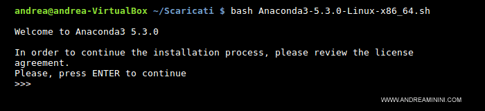L'installer copia e installa le varie librerie dell'ambiente operativo Anaconda su Linux.