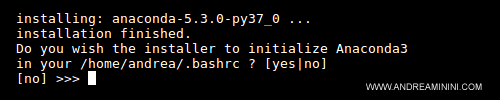 Alla fine l'installer mi chiede se voglio inizializzare Anaconda nella bash.