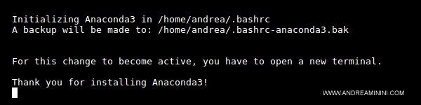 Apro di nuovo il terminale e avvio l'inizializzazione di Anaconda