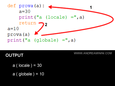 Nota. Le variabili locali usate dentro la funzione sono separate da quelle globali del programma che richiama la funzione.