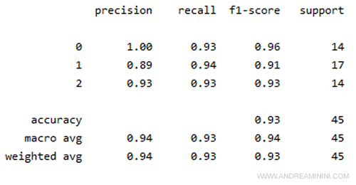 Nella colonna support è indicato il numero degli esempi di ogni classe.