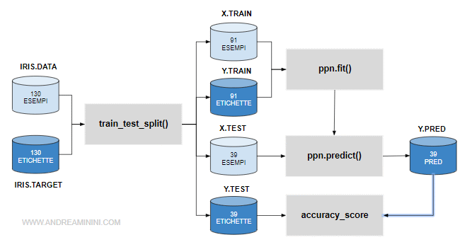 In questi appunti uso il modulo sklearn della libreria scikit-learn di Python per sviluppare ed eseguire un semplice algoritmo di apprendimento automatico.