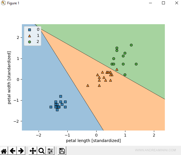 Per verificare l'esito del processo di learning, visualizzo le regioni di classificazione dell'insieme di test.