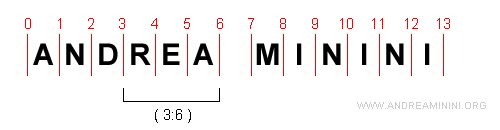 A partire da questa numerazione posso estrarre qualsiasi sottostringa, indicando l'inizio e la fine.