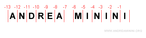In base allo slicing la stringa è un insieme composto da tredici unità elementari. Ognuna ha una sua posizione.