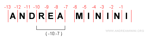 In questo caso per estrarre la stessa sottostringa "rea" dovrei scrivere (-10:-7).