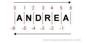 In questo caso la posizione zero indica la fine dell'ultimo carattere della stringa.