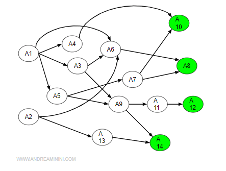 Ad esempio l'attività A3 può cominciare solo dopo che l'attività A1 è finita.
