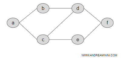 Nel grafo precedente l'insieme E(G) è composto da tutte le coppie ordinate (a,b) , (a,c), (b,d), (c,d), (c,e), (d,f), (e,f).