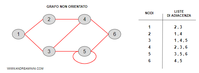 • La lista di adiacenze. I nodi del grafo sono memorizzati in una variabile array. Ogni elemento dell'array indica un nodo del grafo e contiene la lista delle sue connessioni ( archi ).