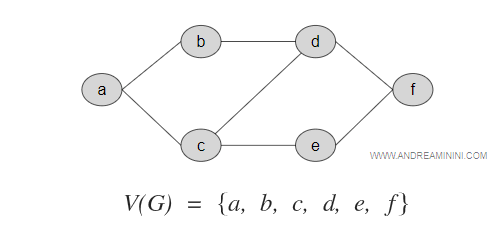 Riprendendo il grafo precedente appartengono a V(G) tutti i nodi a, b, c, d, e, f.