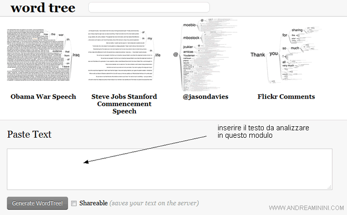 Copio e incollo il testo che voglio analizzare nel modulo Paste Text della form, poi clicco sul pulsante Generate WordTree!.