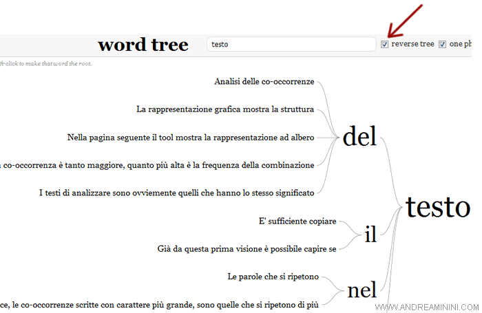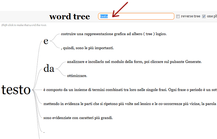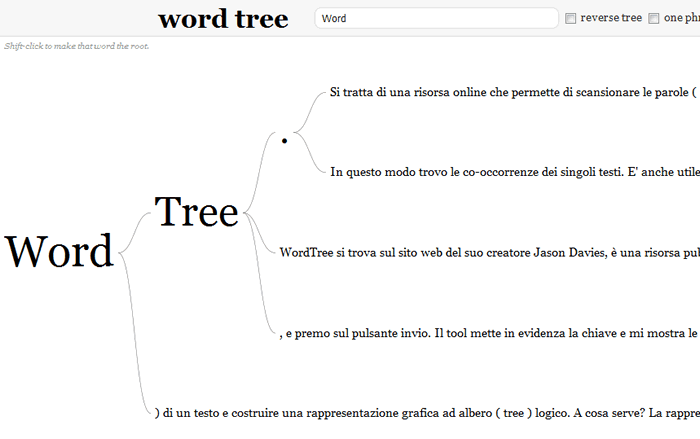 Uno strumento utile e gratuito è Word Tree. Si tratta di una risorsa online che permette di scansionare le parole ( word ) di un testo e costruire una rappresentazione grafica ad albero ( tree ) logico.