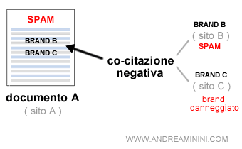 In un documento il brand C viene citato dal sito A insieme al sito B che hanno una pessima reputazione, oppure affrontano argomenti off-topic e spam.