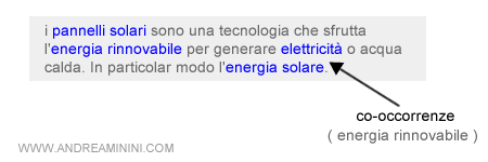 Esempio. Se cito il brand "Ecoage" in un documento che parla di pannelli solari fotovoltaici, molto probabilmente questo brand si occupa di energia rinnovabili perché è associato a queste co-occorrenze tematiche.