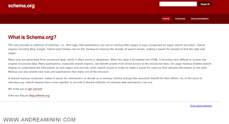 Schema.org è una piattaforma nata nel 2011 per creare una rappresentazione standard dei markup strutturati, condivisa da tutti i principali player del settore. Alla piattaforma hanno aderito quasi tutti i principali motori di ricerca, come Google, Bing, Yahoo!, Yandex, ecc. La piattaforma è pubblicamente consultabile all'indirizzo www.schema.org