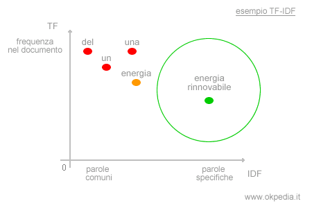 In un documento con cento parole la parola "energia rinnovabile" è presente con 5 occorrenze, è ripetuta cinque volte nel testo. Il suo valore TF è pari a 0,05.