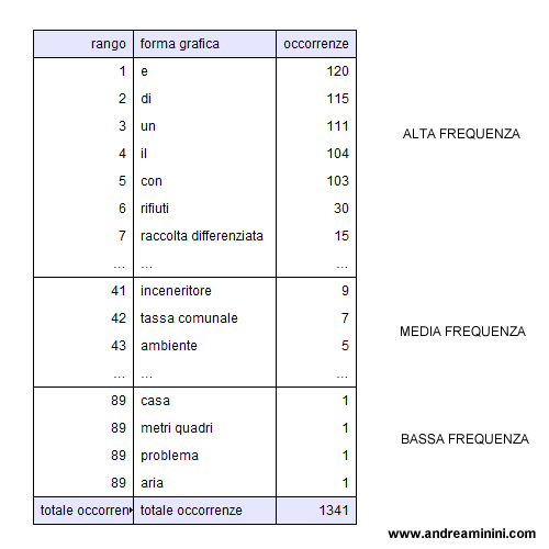 Ad esempio, alla parola più frequente viene associato il rango uno. E così via.