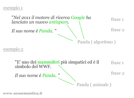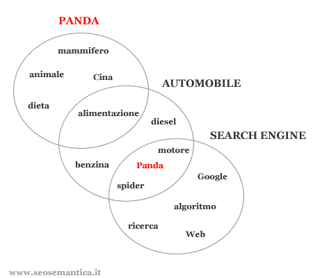 Ad esempio, se il 90% degli utenti considera la parola "Panda" come l'algoritmo antispam di Google, questo viene considerato il campo semantico principale o rilevante. Tutti gli altri campi semantici sono esclusi oppure diventano secondari.