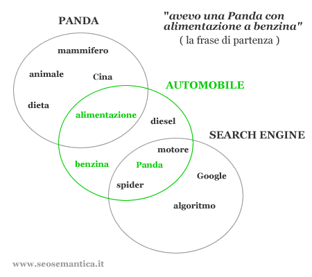Ad esempio, se in un testo sono presenti le parole "Panda", "alimentazione" e "benzina", queste associazioni ci consentono di affermare con discreta sicurezza che si sta parlando dell'automobile.