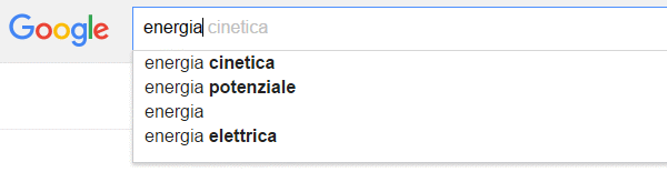 Quando si digita una singola parola nel campo di ricerca, il search engine di Mountain View mostra dei suggerimenti di autocompilazione tramite la funzione Google Suggestion. Queste informazioni provengono dalla base di conoscenza del motore di ricerca e dall'auto-apprendimento passato.